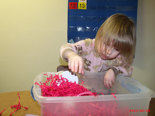 This week was our most productive one yet. I introduced the idea of sensory bins. I wasn't sure how this would go over with Ducky. As it turns out she LOVED it. Every morning she would ask when it was going to be sensory time.